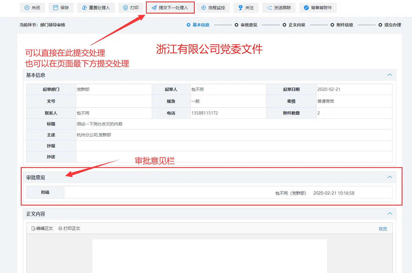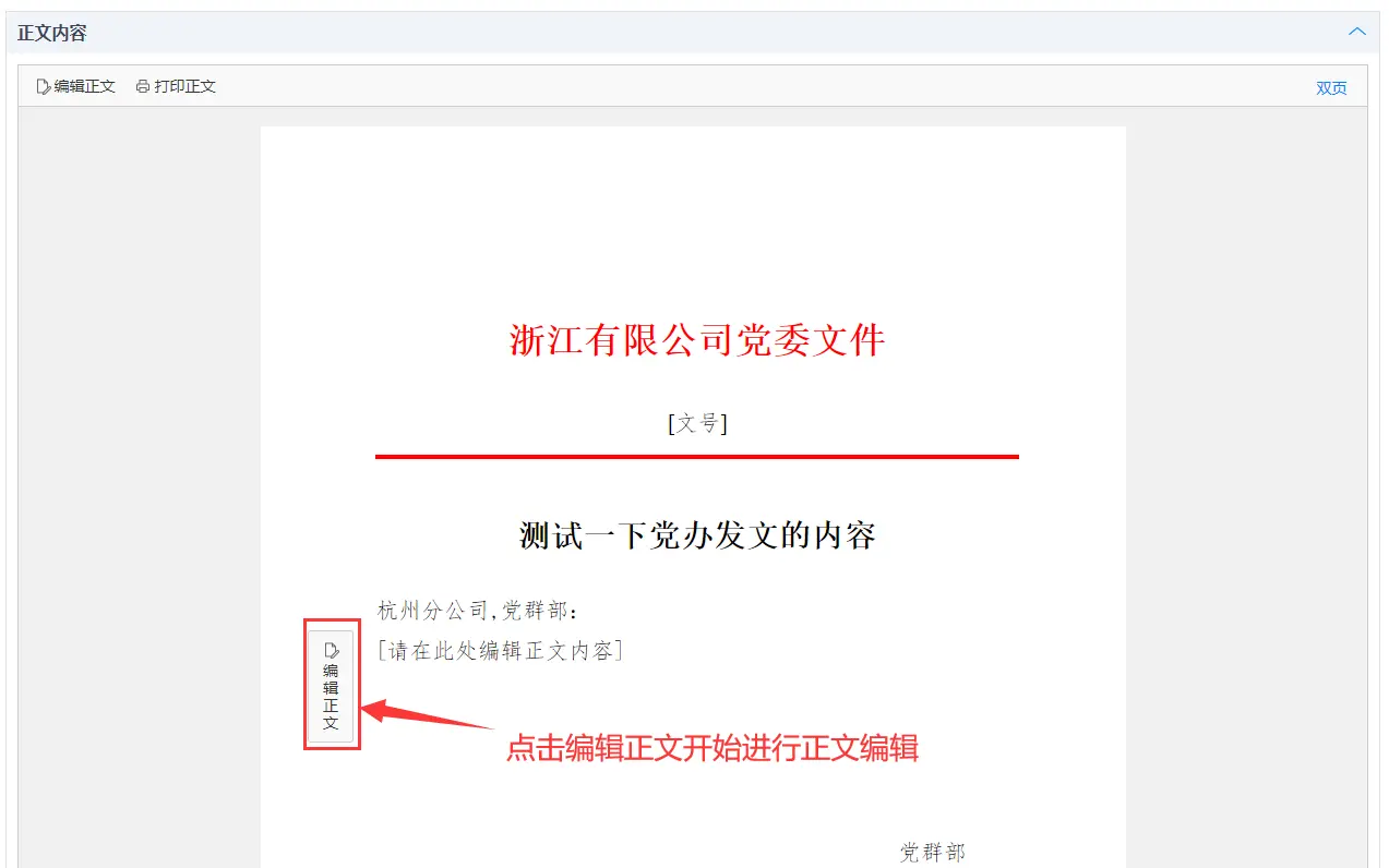 在正文内容区域,点击编辑正文开始进行正文编辑: