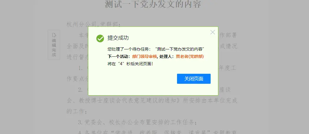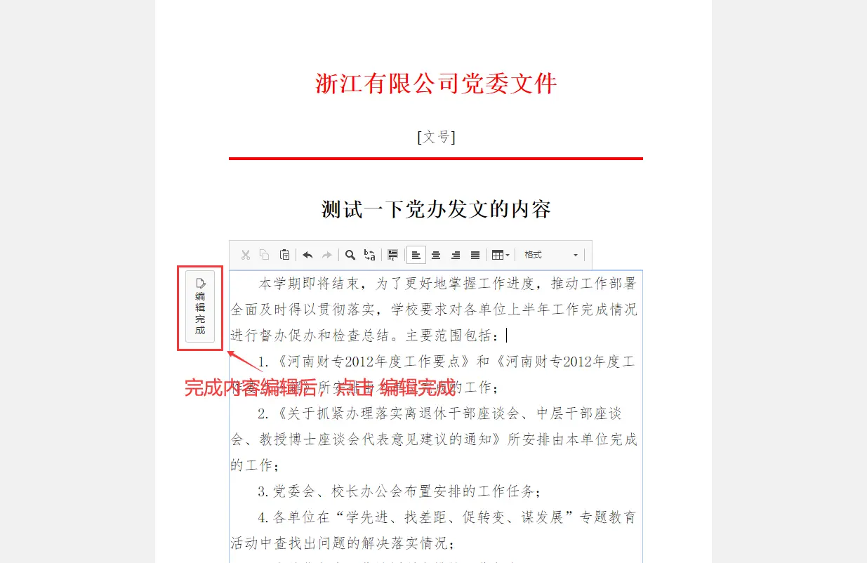 在正文区域完成正文编辑工作后,点击 编辑完成: