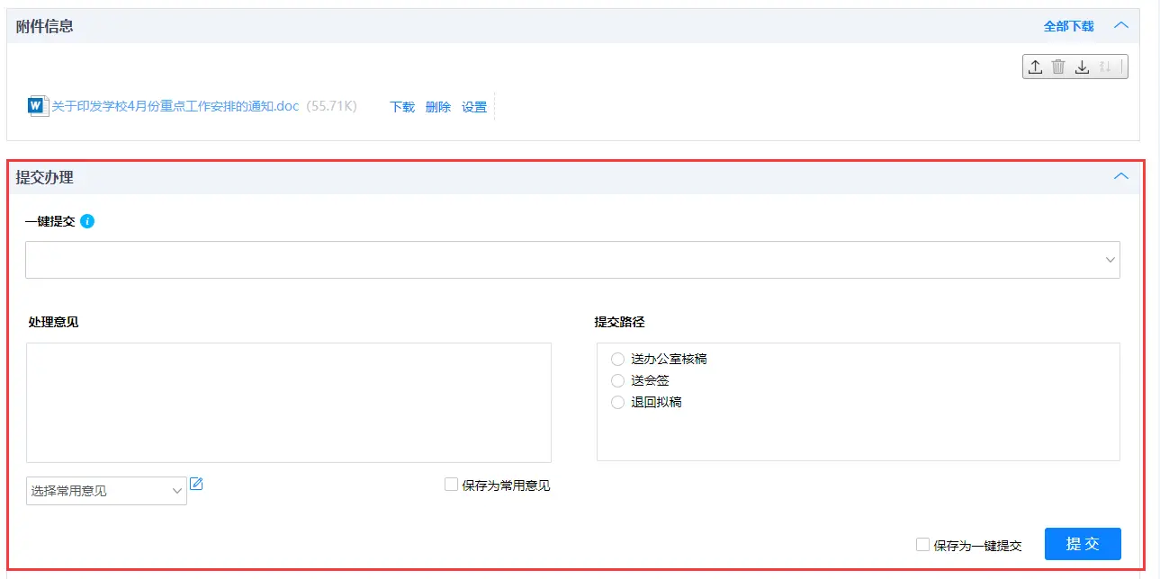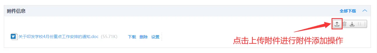在附件信息区域,点击上传附件按钮,完成附件上传操作: