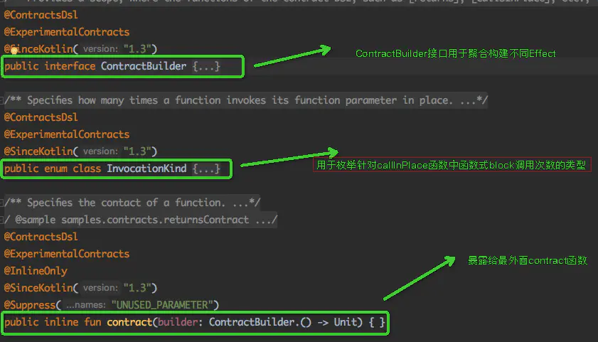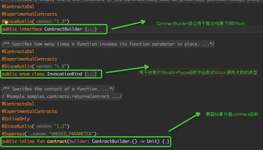 ContractBuilder.kt 中包含了使用契约时主要用到的函数,接口等