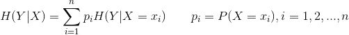 则『条件熵』𝑯(𝒀|𝑿) 表示在已经随机变量X的条件下Y的不确定性,有: