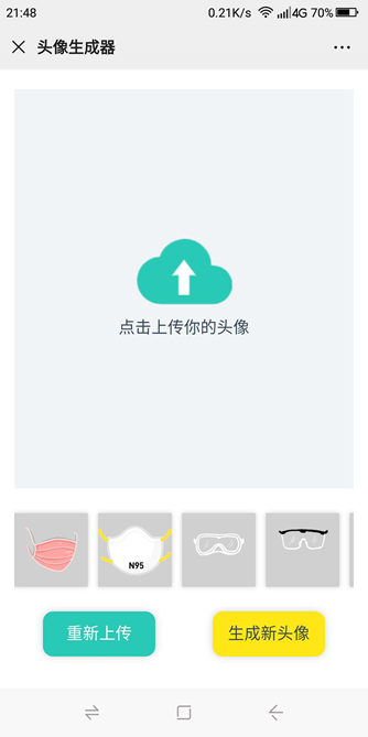 使用vue2实现的H5端口罩头像生成器,可以将微信头像、QQ头像等等替换成戴口罩、护目镜的合成头像