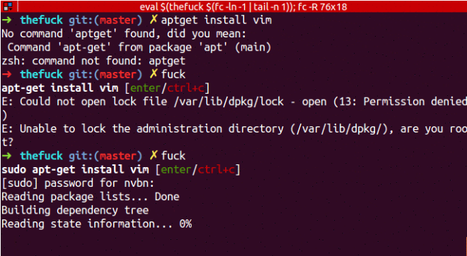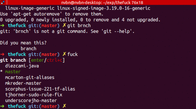 该项目的主要作用是,在你输错命令后,fuck 一下,自动帮你更正命令,解气又实用。