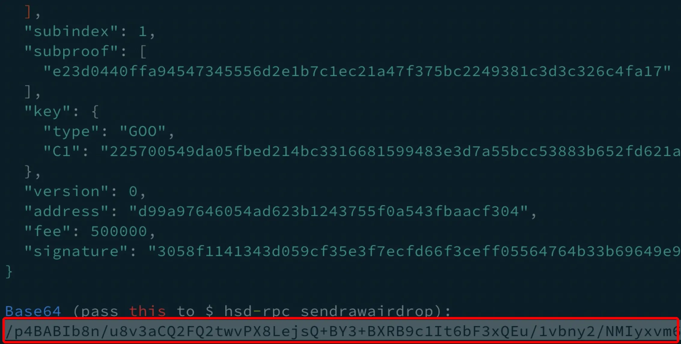 ./bin/hs-airdrop ~/.ssh/id_rsa xxxxxxx 0.01注: 这一步会用到私钥,有很多人担忧这里存在安全隐患,文档上有说明说是用私钥只用于生成加密证明,不会被上传,证明里也不会包含私钥的任何信息,hs-airdrop 的源码是开源的,可以 review 它的代码,或者实在不放心的可以在操作完之后就把用于 GitHub 的密钥都换掉。