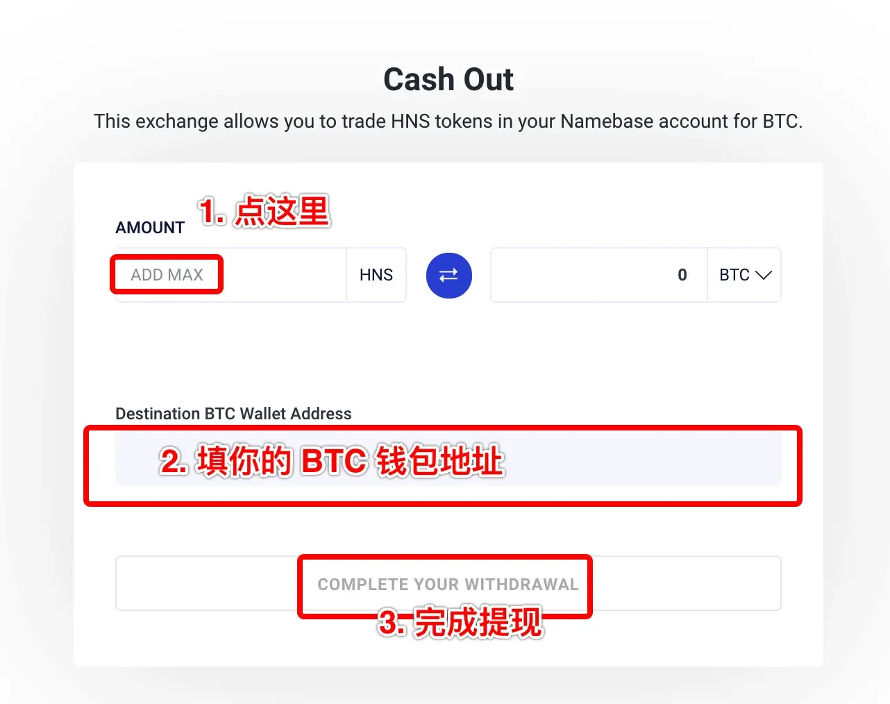 Step 4. 提取到 BTC 钱包