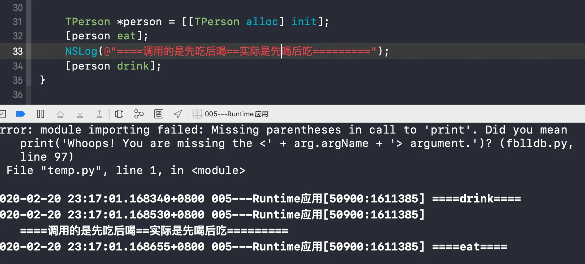 NSLog(@"==TPerson==eat====");