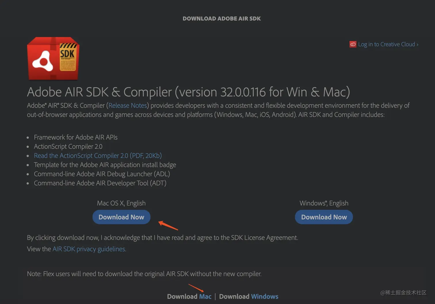 直接下载下面的那个二进制文件安装包,安装目录选择在 /Applications/Adobe Flash Builder 4.7/sdks下,新建一个文件夹4.16.1目录。