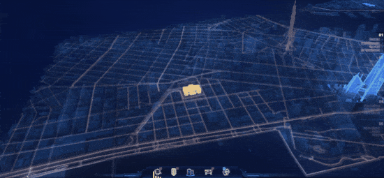 上图主要以 2/3D联动的方式,依次展示了在面对突发情况下,城市应急救援的响应过程。