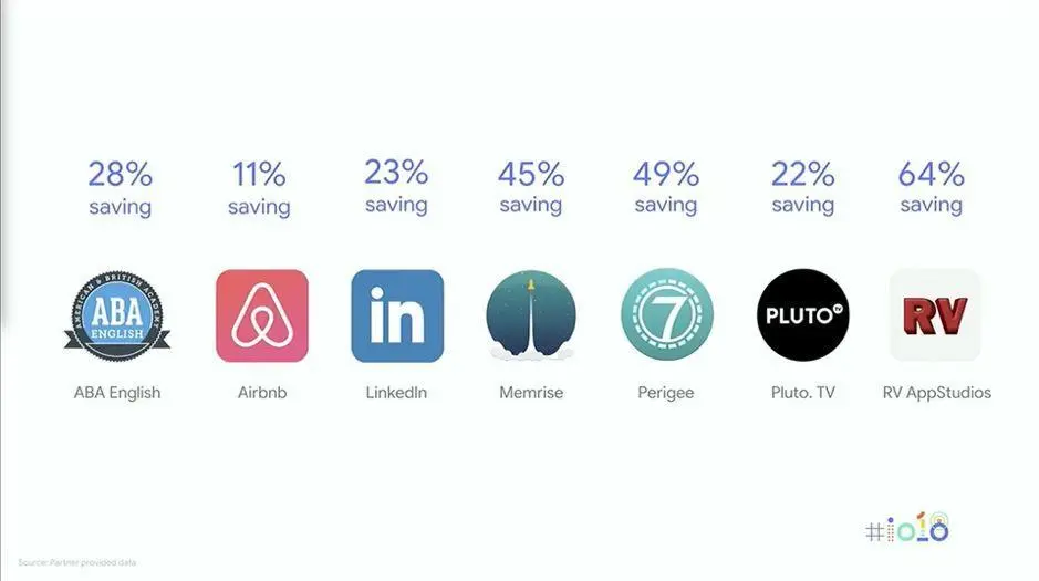 缩减应用大小的示例(资料来源于Google I/O 2018)