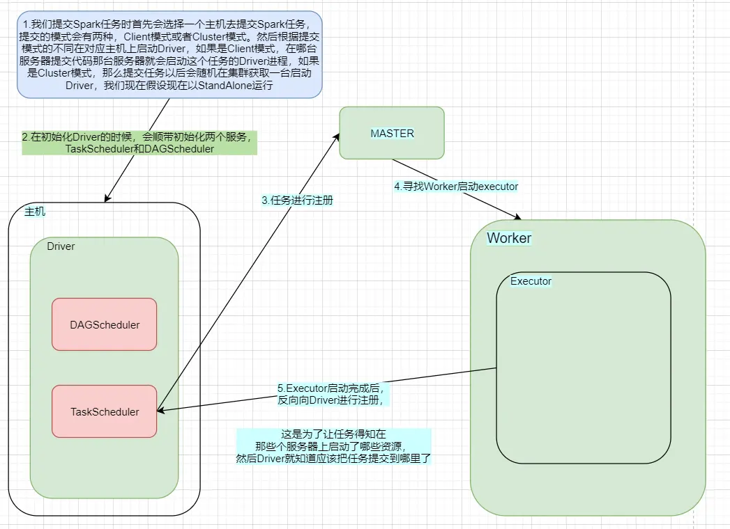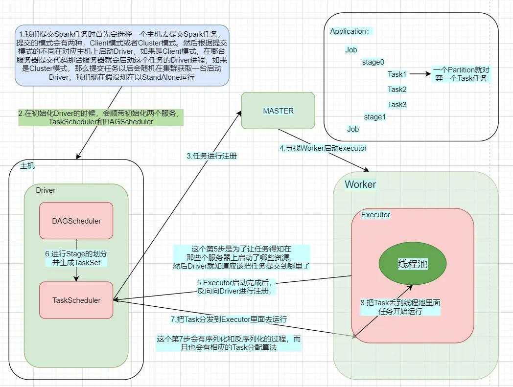 这和Stage的划分一样基本上说是面试必问的问题,问也很简单,说一个Spark任务然后提交后的整个流程给说说看