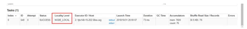 我们提交任务后有Spark任务的监控界面,大家一定要利用好这个界面,Spark的界面是做得很好的。比如我们看到这个task的数据本地性是NODE_LOCAL说明是极好的,但是如果有你的task任务的数据本地性较差,可以尝试如下调优: