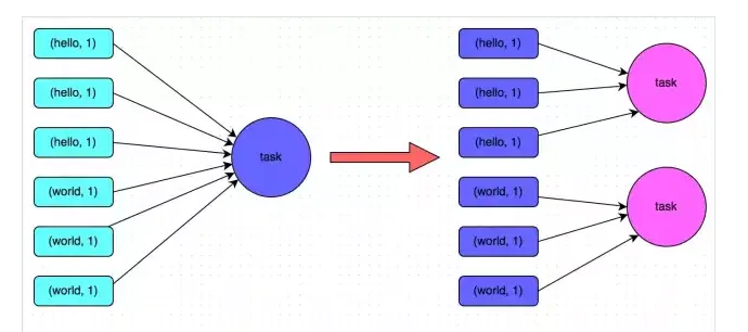 所谓的map-side预聚合,说的是在每个节点本地对相同的key进行一次聚合操作,类似于MapReduce中的本地combiner。map-side预聚合之后,每个节点本地就只会有一条相同的key,因为多条相同的key都被聚合起来了。其他节点在拉取所有节点上的相同key时,就会大大减少需要拉取的数据数量,从而也就减少了磁盘IO以及网络传输开销。