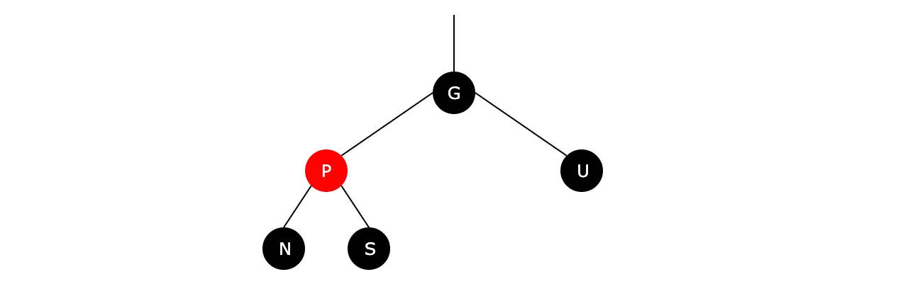 如果插入结点的父结点为红色,那么父结点不可能为根结点,所以插入结点总是存在祖父结点。这点很重要,后续的旋转操作需要祖父结点的参与。