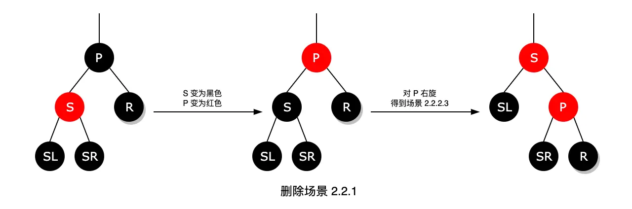 场景 2.1.2.2:替换结点的兄弟结点的右子结点为黑色,左子结点为红色