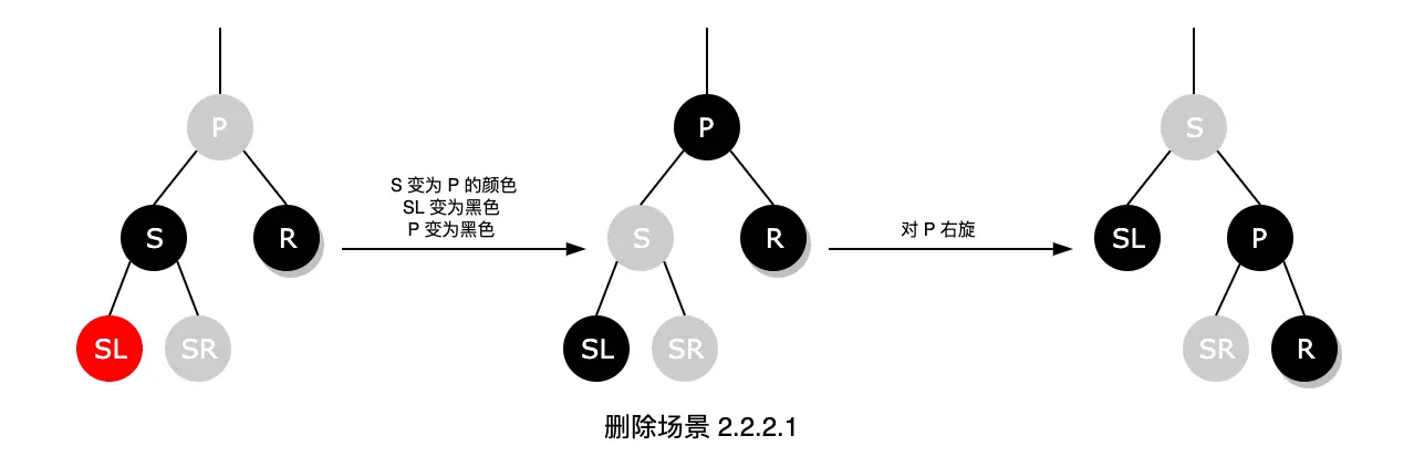 场景 2.2.2.1:替换结点的兄弟结点的左子结点为红色,右子结点任意颜色