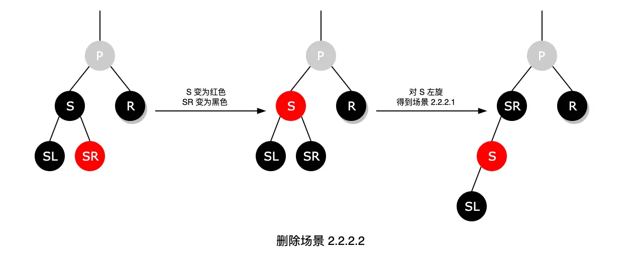 场景 2.2.2.2:替换结点的兄弟结点的左子结点为黑色,右子结点为红色
