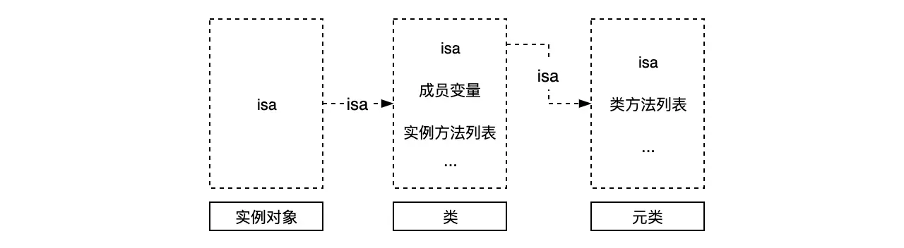 由于所有的类自身也是一个对象,我们可以向这个对象发送消息,比如调用类方法。那么为了调用类方法,这个类的 isa 指针必须指向一个包含类方法的一个 objc_class 结构体。而类对象中只存储了实例方法,却没有类方法,这就引出了元类的概念,元类中保存了创建类对象以及类方法所需的所有信息。