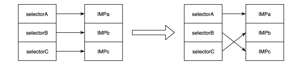 如果要互换两个已经写好的方法实现,可以用下面的函数