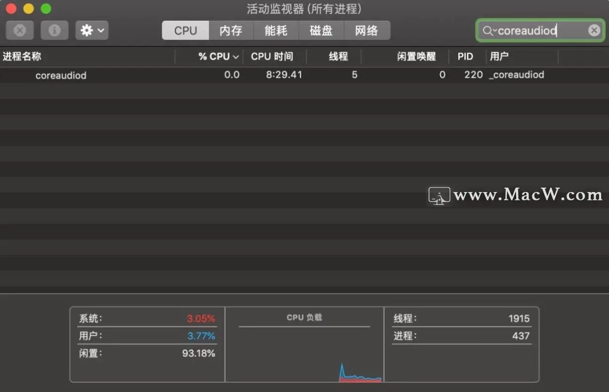 若核心音频coreaudiod出现问题,也会导致系统声音停止工作或失真,这时可以尝试重启coreaudiod。