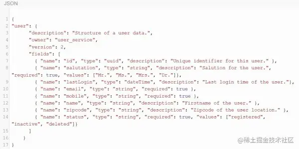 通常,若要为基础架构构建数据网格,所有的微服务都应当发布各自写入网格的数据格式。例如:用户服务(即:管理某个系统中所有用户信息的服务)应当发布所有具有upsert和delete操作的用户信息,以及用户数据结构的定义。同时,此类数据定义应当能够支持版本控制,以便任何新的服务都可以查询到特定的最新版本。据此,所有相关的消费者服务也都可以从“数据网格”中查询到数据定义,进而构建相应的服务功能。以下是一个已发布的用户数据结构(版本1)的代码示例。其对应的URL为:https:///grid/datadefinition&type=user&version=1.