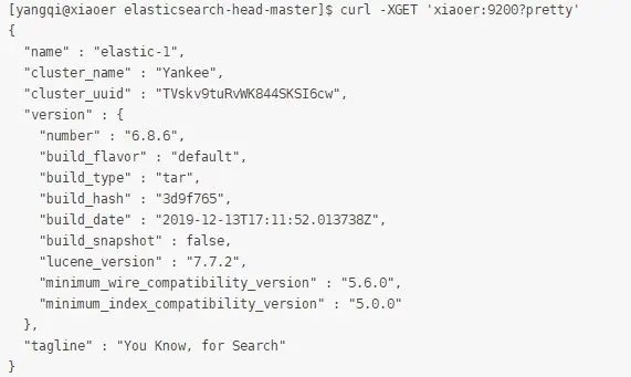 [yangqi@xiaoer ~]$ curl -XGET 'xiaoer:9200'