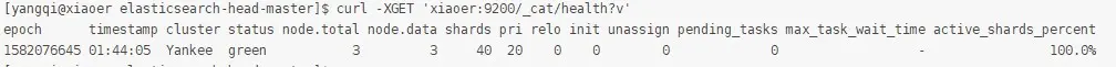 [yangqi@xiaoer ~]$ curl -XGET 'xiaoer:9200/_cat/health?v'