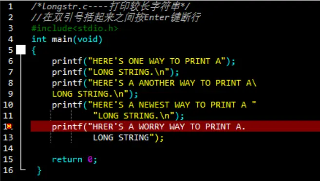 有时,printf()的语句太长了,在屏幕上可能不太方便阅读。只需在不同部分之间,输入空白(空格、制表符、换行符)即可。