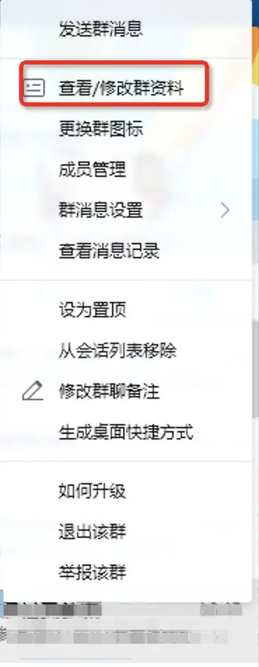 第一步:选中群右击,选择【查看/修改群资料】