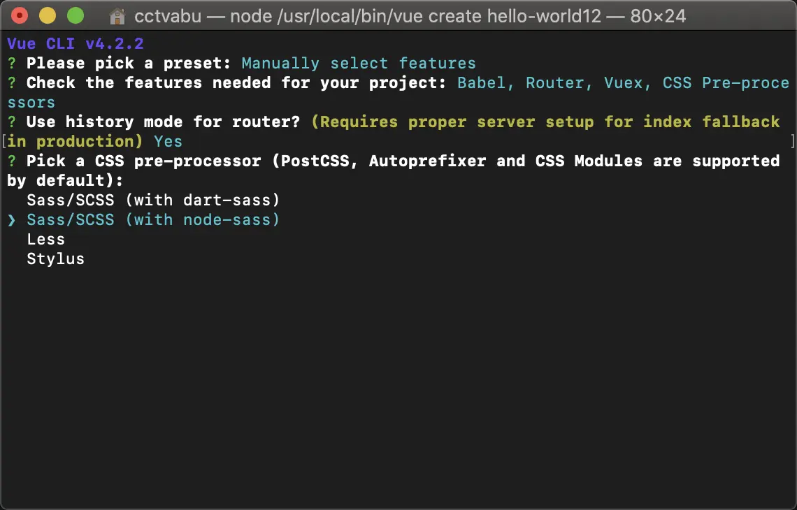 vue create hello-world