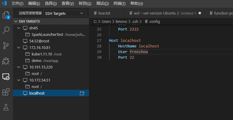 注意:使用Win10自带的SSH服务连接WSL报错,协议不匹配,使用VSCode Remote可以连接WSL