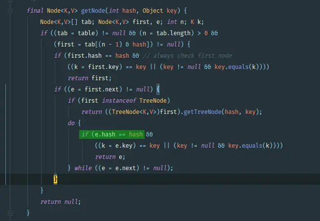 } while ((e = next) != null);