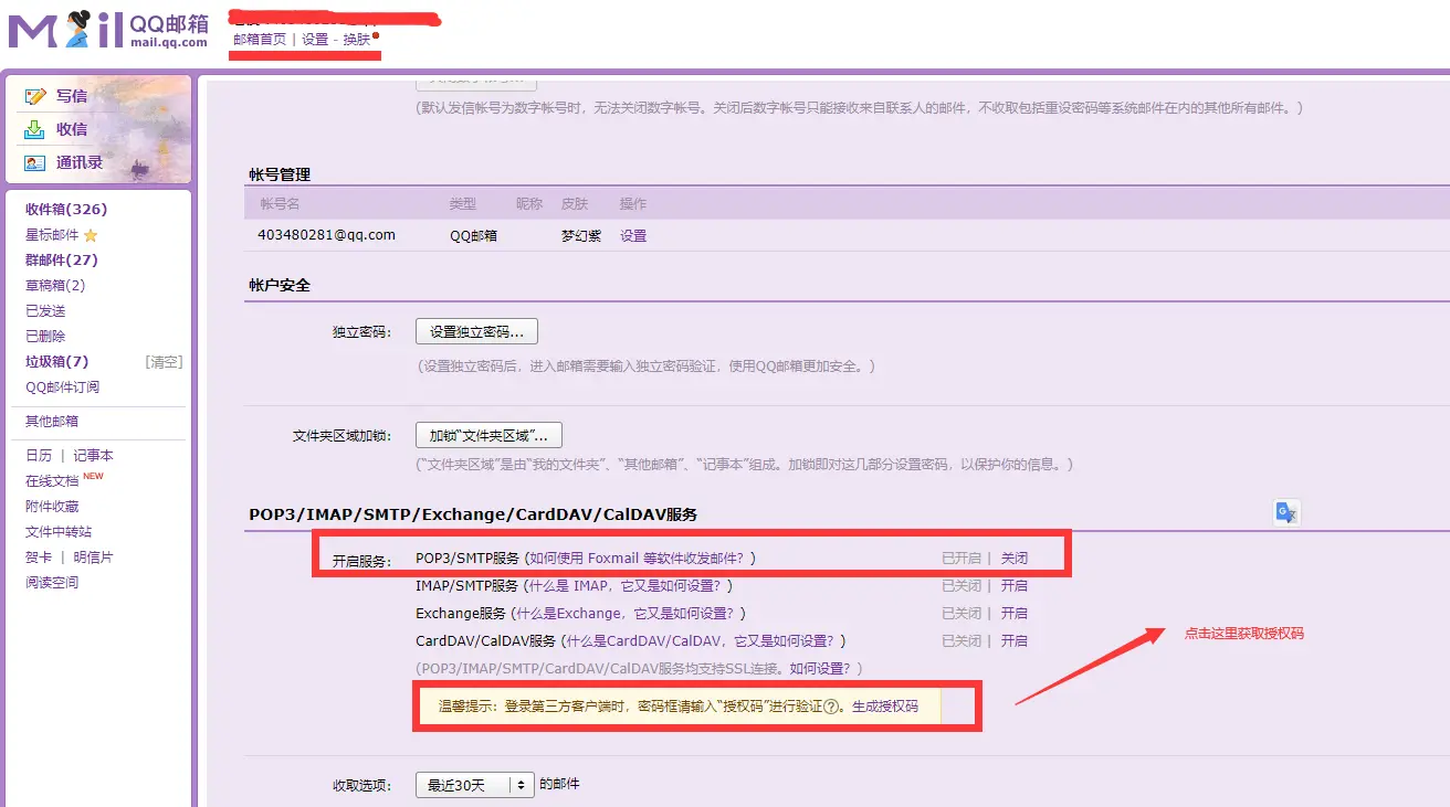 这里使用的是qq邮箱,因为qq邮箱的权限比较好设置一些。