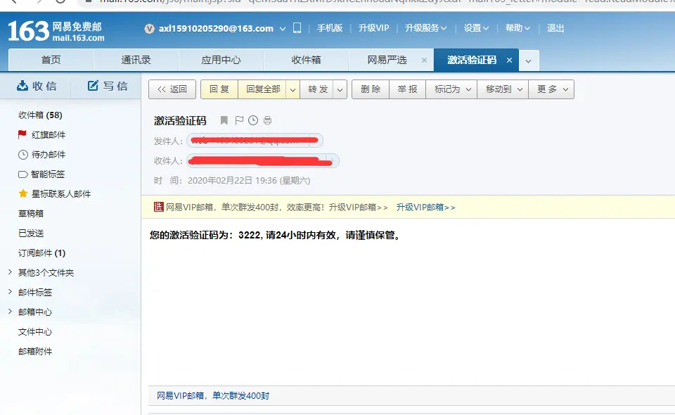html: `<b>您的激活验证码为:${code}, 请24小时内有效,请谨慎保管。</b>`