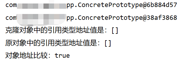 System.out.println("对象地址比较:" + (concretePrototypeClone.getHobbies() ==