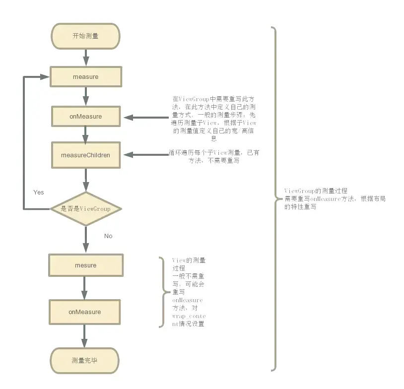 DecorView-->ViewGroup(--- >ViewGroup)-->View,按照这个流程从上往下,依次measure(测量),layout(布 局),draw(绘制)二、Measure流程