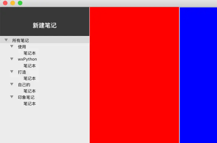 对于这种三栏布局我们可以借助wxPython提供的aui组件来实现。aui全称是Advanced User Interface,即高级用户界面。