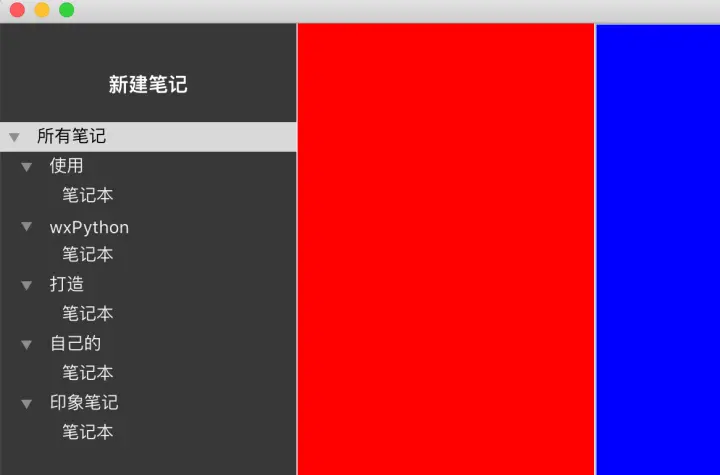 from .text_editor import TextEditor这里会涉及到NavPanel、ListPanel和TextEditor三个子组件,它们的详细实现我们会在后面逐个提及,这里暂时将它们设置成纯色背景的面板,便于观察。