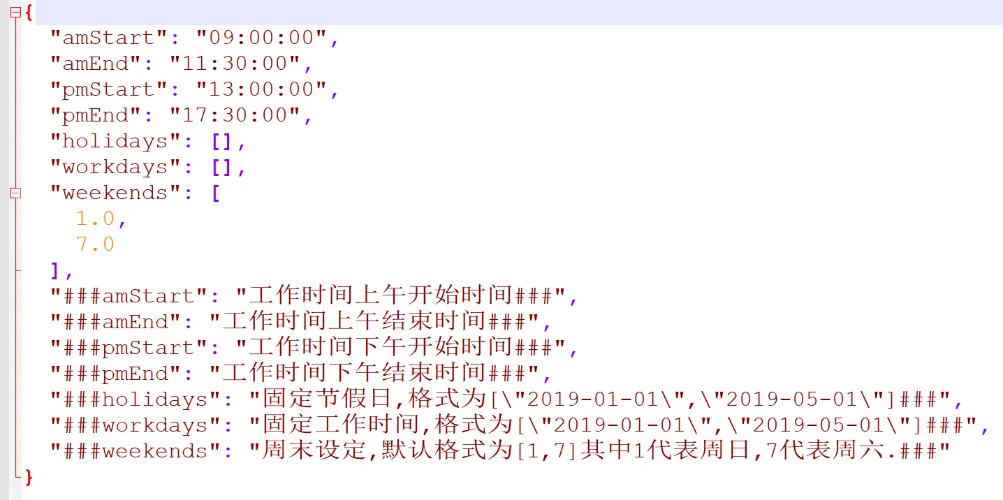 O2OA服务器提供了配置文件,支持自定义工作日、节假日、工作时间配置。