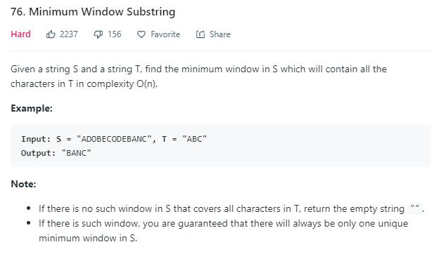 给两个字符串,S 和 T,在 S 中找出包含 T 中所有字母的最短字符串,不考虑顺序。