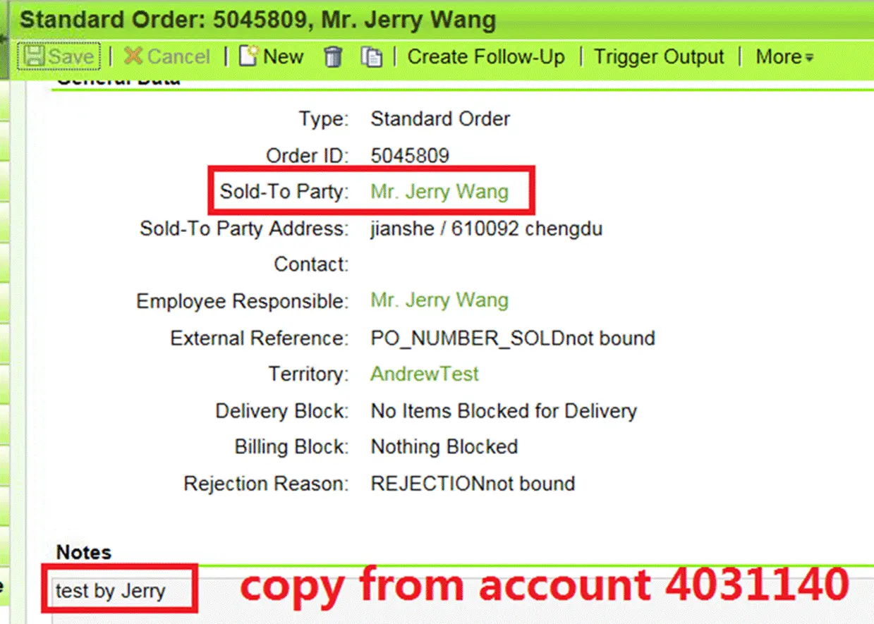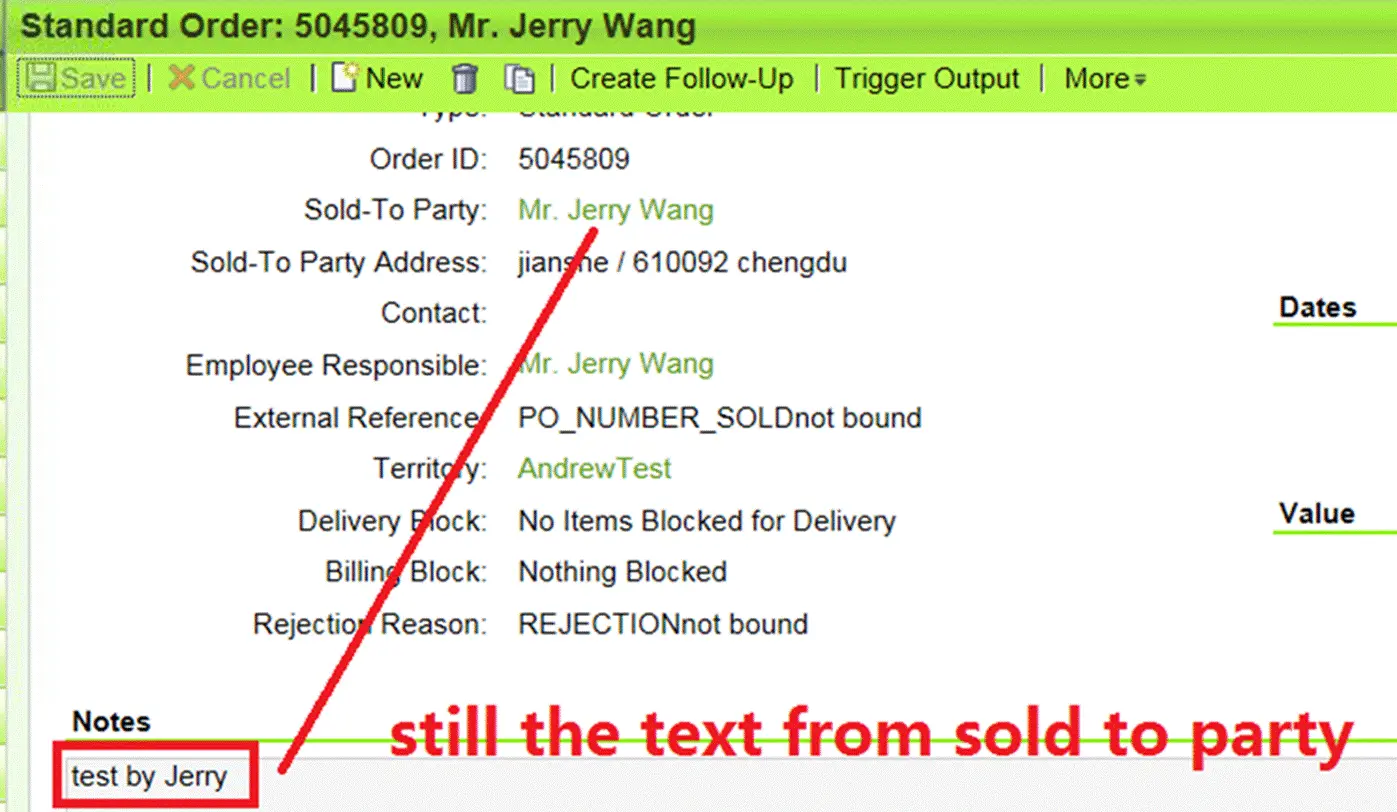测试结果发现0002 (copy from sold to party ) copy的text 会被0003 ( copy from ship to party ) copy的text所overwrite: