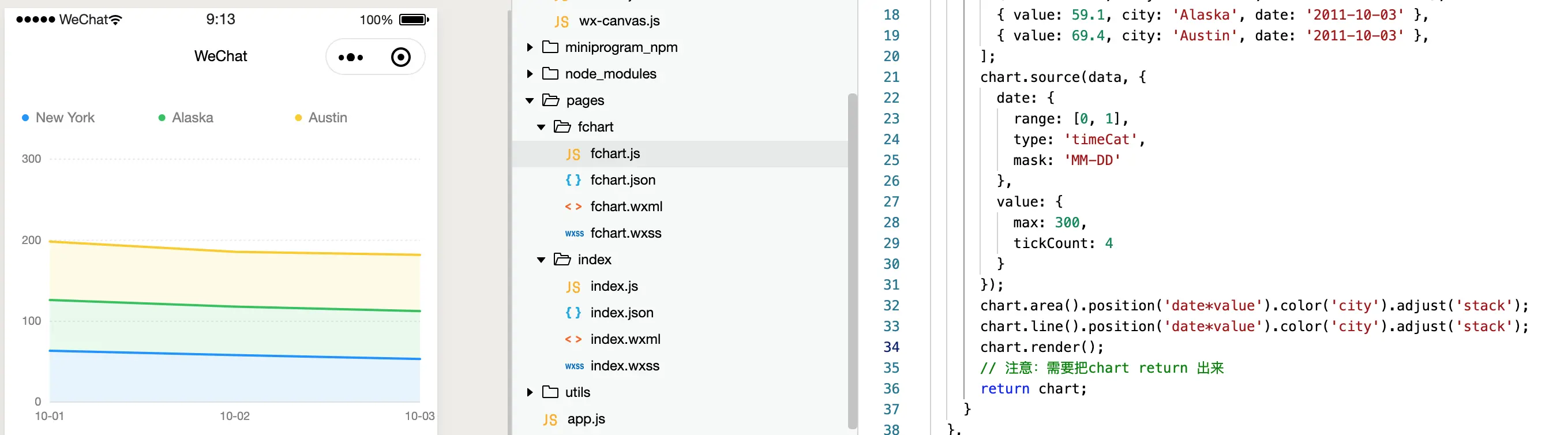 <view class="container"> <f2 class="f2-chart" onInit="{{onInitChart}}" /> </view> -