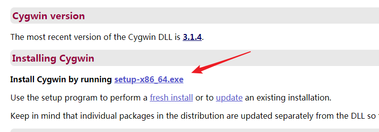 首先,到官网下载相应的安装程序: www.cygwin.com/