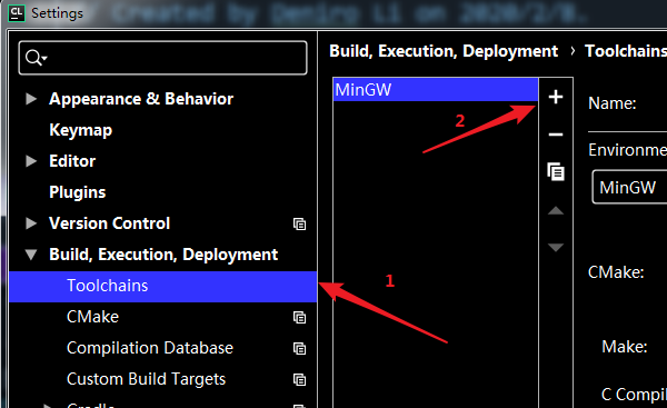打开 settings -> Toolchains -> 配置一个新的编译环境: