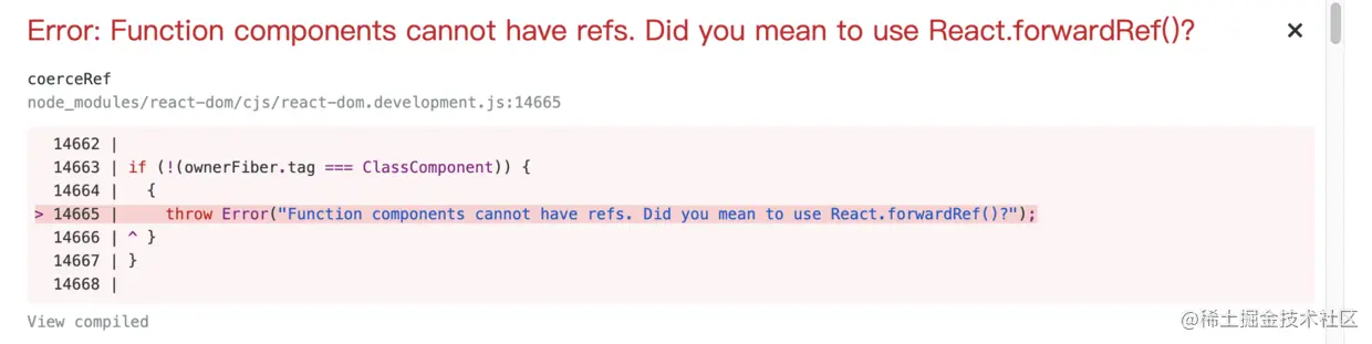 ① 如果目标组件是一个 FunctionComponent 的话,是没有实例的(PureComponent),此时用 ref 去传递会报错:
