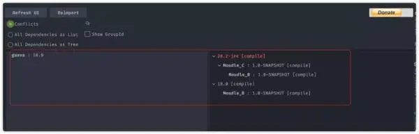 通过插件,我们可以清晰看到冲突包,以及依赖路径,还有相应的 Scope。