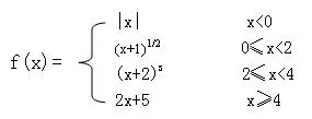 输入x ,计算并输出下列分段函数 f(x) 的值。可以调用数学库函数:平方根函数sqrt(),绝对值函数fabs() 和幂函数 pow()。