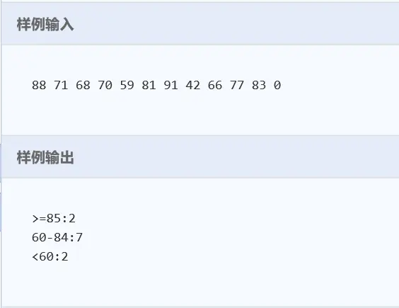 printf(">=85:%d\n60-84:%d\n<60:%d\n",a,b,c);