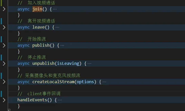 我们就必须要监听到远端流订阅成功事件(即stream-subscribed)和远端流删除事件(stream-removed),所以我为RtcClient类增加了两个回调函数作为入参:streamSubscribedCallback和streamRemovedCallback,如上图;