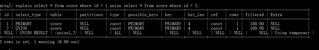 - UNION RESULT(UNION的结果,union语句中第二个select开始后面所有select)