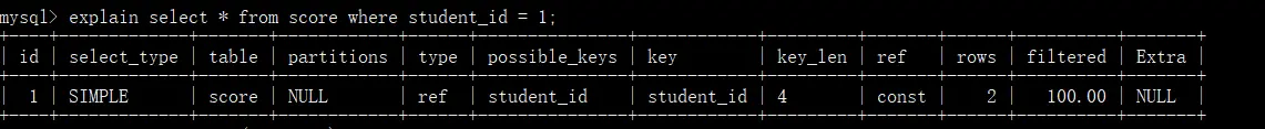 Select tables optimized away:这个值意味着仅通过使用索引,优化器可能仅从聚合函数结果中返回一行